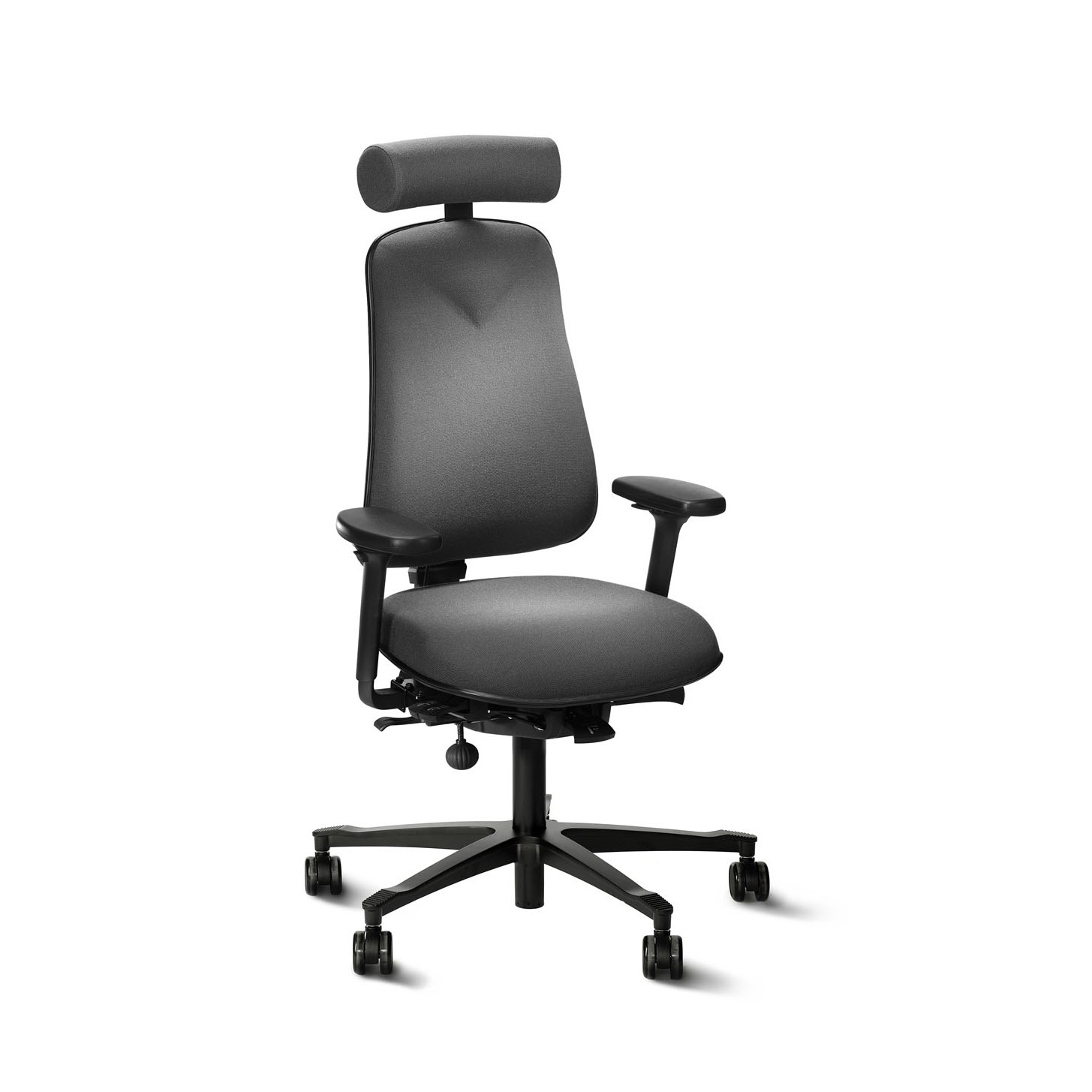 Dossier haut L 410 x H 540 mm moblie et flexible, réglable en hauteur. Angle du dossier régulépar gaz pour un soutien maximal du dossier