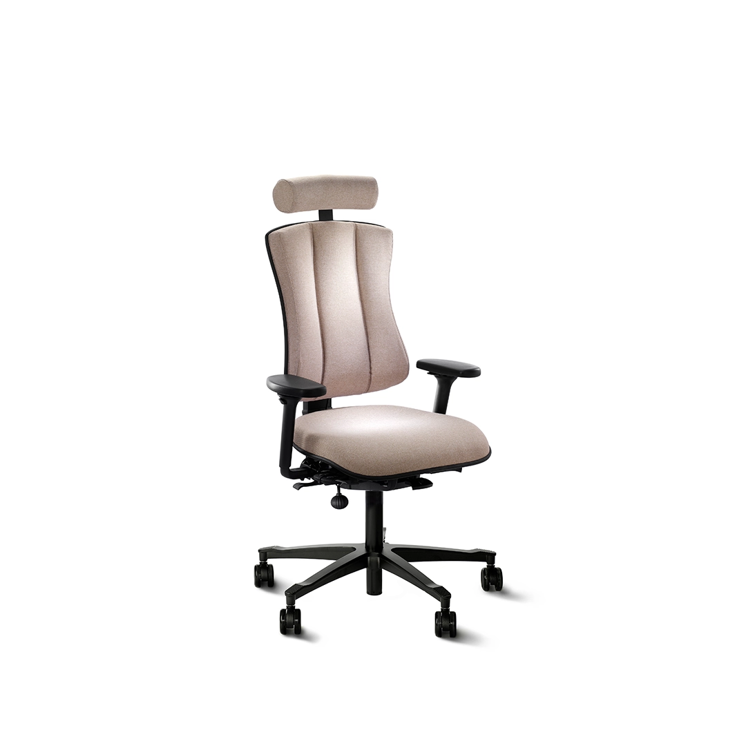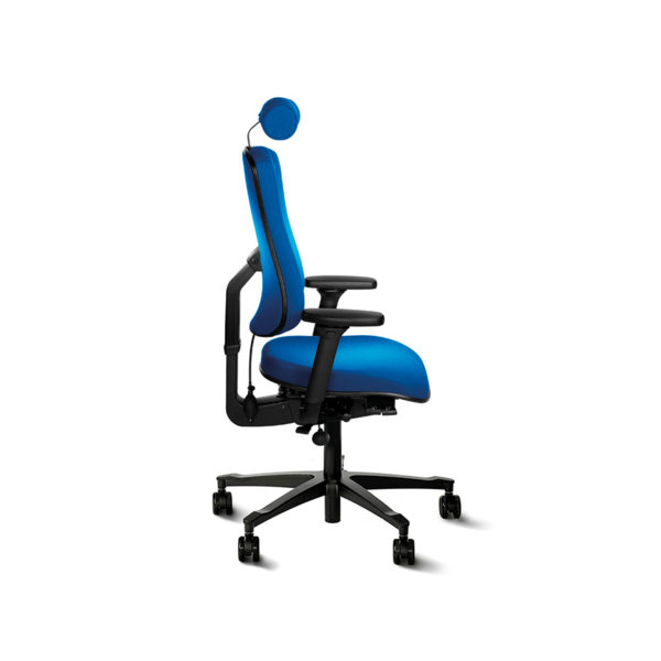 Dossier haut L 420 x H 530 mm moblie et flexible, réglable en hauteur. Angle du dossier régulépar gaz pour un soutien maximal du dossier